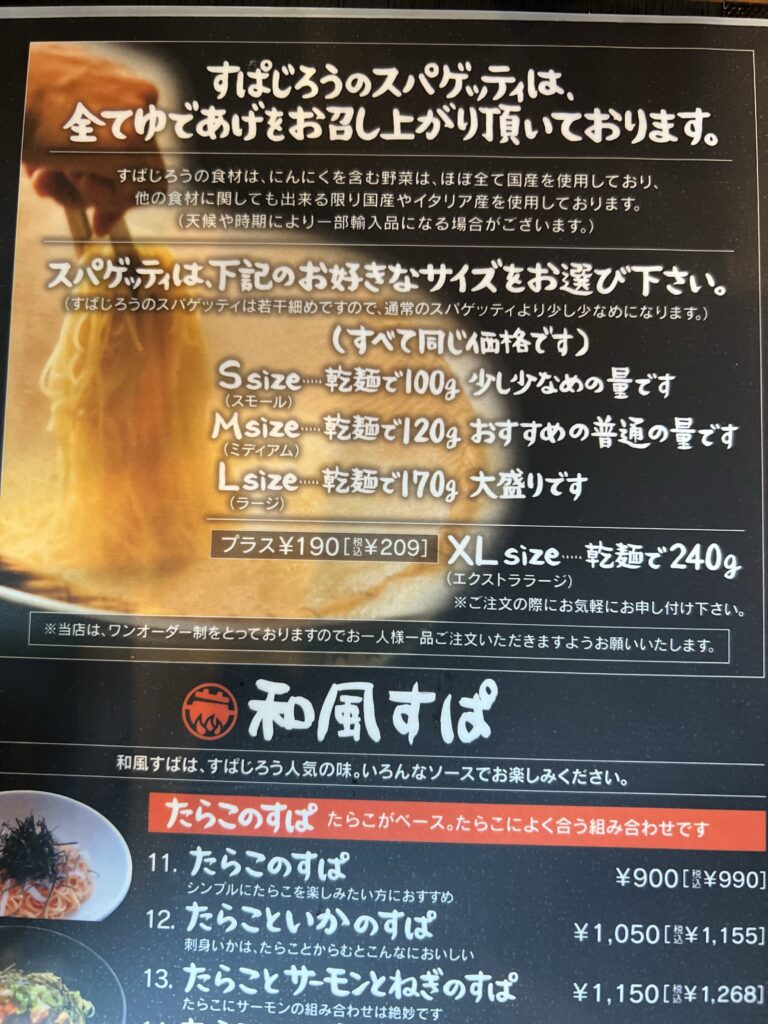 スパゲティーのサイズはSサイズMサイズLサイズと3つから選ぶことができどの価格も同じ金額と言うことでとてもうれしいです。